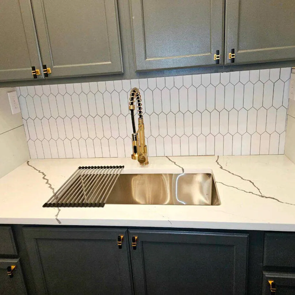 Looking for a mid-century modern look to spice up your house, apartment, or rental home? These white, long hexagon, picket-style peel and stick tile sheets are a stunning way to redecorate without the hassle of cutting, laying, and grouting a traditional backsplash or bathroom wall! These easy-to-install tiles are an answer to a DIY decorator's prayers, made from high-quality, durable materials. They are also a perfect solution for fans of the picket tile layout, as the sheets come pre-arranged in the pattern for easy installation! These stone composite peel-and-stick tiles feature a matte, smooth finish. They create the perfect backsplash for a modern farmhouse bathroom and pair perfectly with kitchen countertops. Add a decorative stick-on tile design to any surface in your home - this DIY project is best suited for low-moisture, low-heat environments.