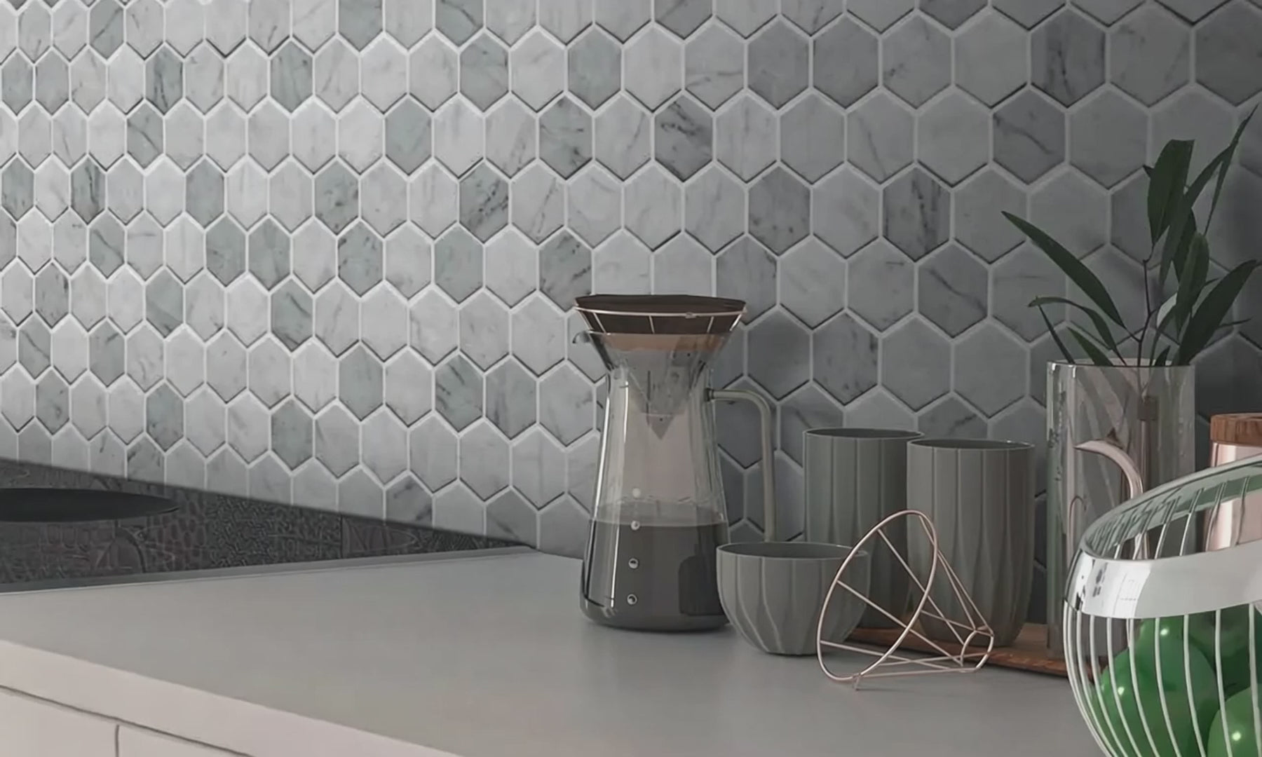 These durable recycled glass tiles are a perfect mix of water-resistant glass tiles and stunning natural marble patterns. These beautiful mosaic hexagon tiles are a great choice for creating a sustainable home design. These tiles are highly durable and will add the perfect touch to your home's outdoor and indoor walls, shower walls, shower floors, steam rooms, and even pools. If you're looking to add a fresh, organic look to your kitchen, our recycled glass backsplash is easy to install and one of the most beautiful recycled building materials for elegant and classic home design. These recycled glass tiles have a matte finish suitable for high-traffic areas and wet rooms. Because hexagon-shaped tiles have a classic look, these glass mosaic tiles are an excellent choice for traditional or modern home design.